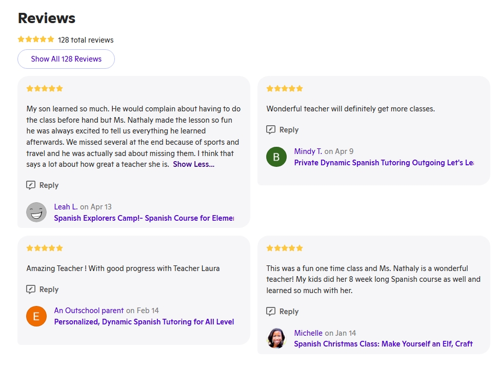 The classes are designed to be interactive and conversational, ensuring that your child isn’t just memorizing vocabulary but actually using Spanish in real-world contexts. I will guide them every step of the way in a fun and supportive atmosphere, helping them feel comfortable and excited to learn!